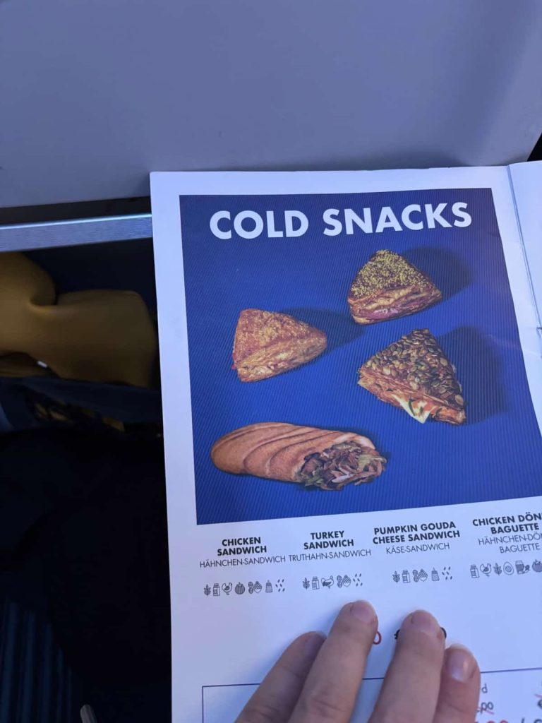 - Prepare payment methods: Card payment on board was only possible with physical cards on our flights (no phone payment!!!). So, to be safe, pack some cash (Euros) for buying drinks and snacks.